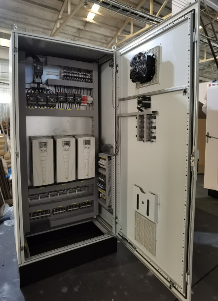 PLC控制柜可完成设备自动化和过程自动化控制,实现完美的网络功能,性能稳定、可扩展、抗干扰强等特点,是现代工业的中心和灵魂。可以根据用户需求量身设计PLC控制柜、变频柜等,满足用户要求,并可搭配人机界面触摸屏,达到轻松操作的目的。